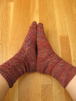 I'm with Roo: yay for socks! I've been wearing hand-knit socks (made by either my grandma or me) all of winter (and spring, up till now), both around the house and in bed. I still haven't memorized my pattern, though. But you're dead right about not getting too fancy. The socks I started for my grandma around Christmas are still half-finished because I'm unable to memorize the lace pattern... ;)